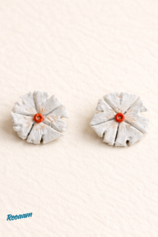 The bright orange thread cord adds a bold touch, perfectly balanced with soft white and orange beads for a graceful finish.