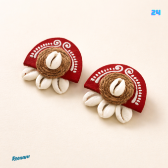 There’s something truly special about jewellery that feels close to nature and tradition. These handcrafted red earrings are made with love and care, beautifully combining rustic jute work and natural cowrie shells. The vibrant red base with delicate white hand-painted patterns gives them a warm, artistic soul that instantly catches the eye.