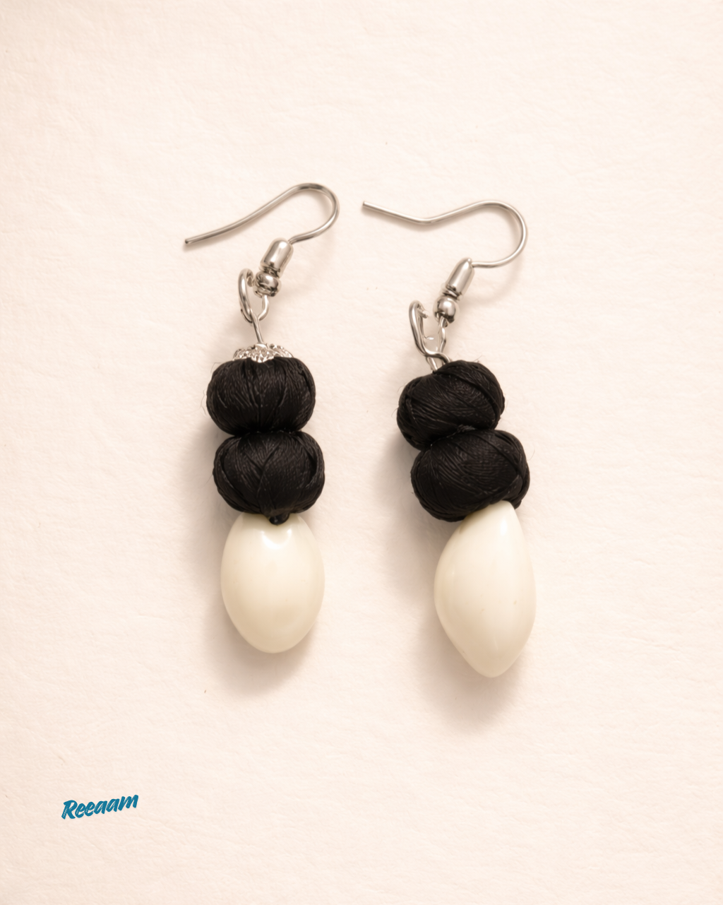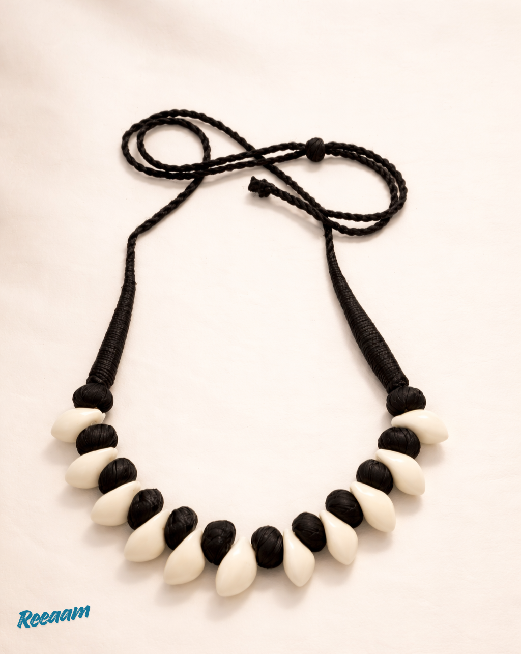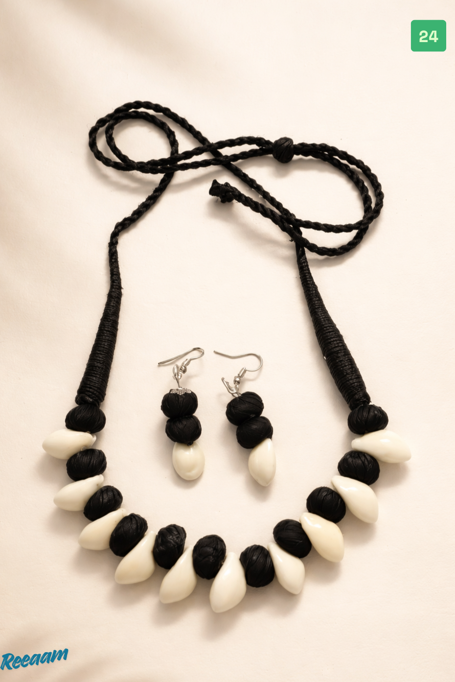 Handcrafted Black & Ivory Statement Necklace with Matching Earrings Set
