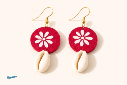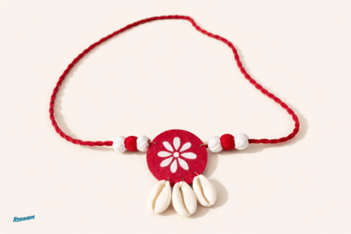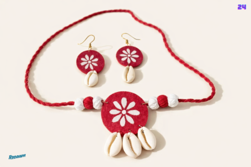 Add a touch of traditional charm and artistic elegance to your look with this beautifully handcrafted jewellery set. Designed with a vibrant red floral centerpiece, this necklace features intricate hand-painted patterns paired with decorative beads and natural cowrie shells that create a unique ethnic aesthetic.