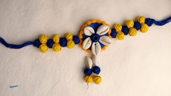 Add a pop of vibrant tradition to your look with this beautifully handcrafted thread necklace set, featuring natural cowrie shells and colorful yarn beads. Designed in an eye-catching royal blue and mustard yellow palette, this statement piece blends boho charm with tribal elegance.
