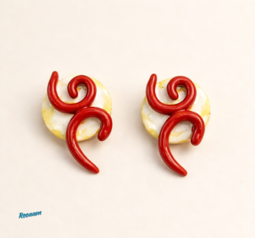 Add a touch of artistic charm to your look with this stunning handcrafted jewellery set. Designed with a bold red braided thread necklace, the set features a unique half-moon pendant beautifully highlighted with red swirl detailing and soft yellow accents. Decorative white and yellow beads enhance the neckline, giving it a vibrant yet elegant finish.