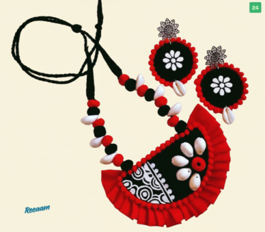 Elevate your ethnic wardrobe with this meticulously handcrafted jewelry set. Inspired by traditional folk art and tribal aesthetics, this set features a statement bib-style necklace and matching oversized studs, perfect for festive occasions, cultural events, or adding a bohemian flair to your everyday look.