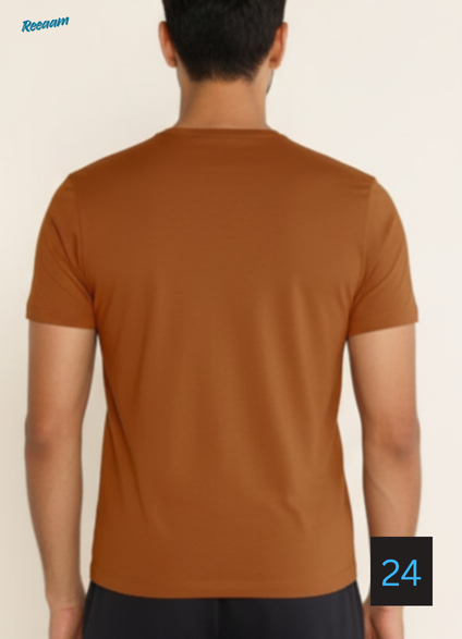 Designed with a modern slim fit, this T-shirt features a round neckline and short sleeves that provide a clean, versatile look. The rich earthy tone adds a touch of sophistication and pairs easily with jeans, chinos, or shorts. Whether worn on its own or layered, this summer essential delivers comfort, simplicity, and timeless style.