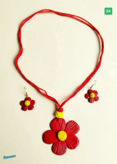 Red Flower Jewellery Set and Earrings