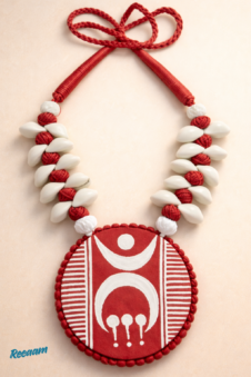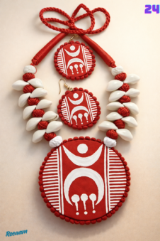 Red & White Tribal Art Statement Jewellery Set – Handcrafted Ethnic Elegance