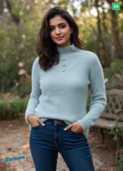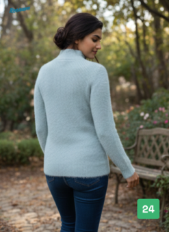 Soft-Touch Mock Neck Angora-Style Women Sweater in Pastel Blue