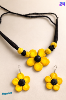 Brighten up any outfit with this handcrafted sunflower-inspired jewelry set. Designed to capture the cheerful essence of a summer garden, this set features a bold floral necklace and a matching pair of lightweight earrings.