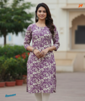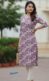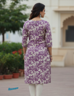 Women’s Mauve Floral Print Cotton Straight Kurti