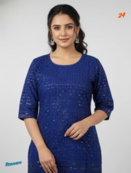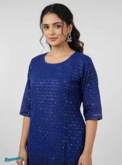 Women’s Royal Blue Chikankari Embroidered Kurti