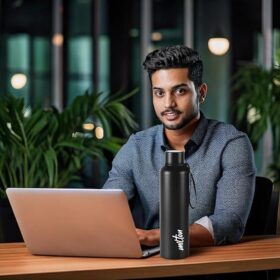 Milton Aura 1000 Thermosteel Water Bottle 1050 ml, 24 Hr Hot and Cold I Leak Proof Lid, ISI Certified I Vacuum Insulated I for Office, Gym, School I Black Visit the MILTON Store