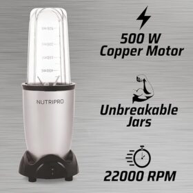 NutriPro Juicer Mixer Grinder – Smoothie Maker – 500 Watts (2 Jars & 1 Blade, Silver)