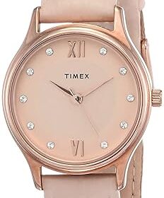 TIMEX Classics Analog Watch for Women with Rose Gold Round Dial & Pink Leather Strap Band Water Resistant Women’s Wrist Watches – TW00ZR270E