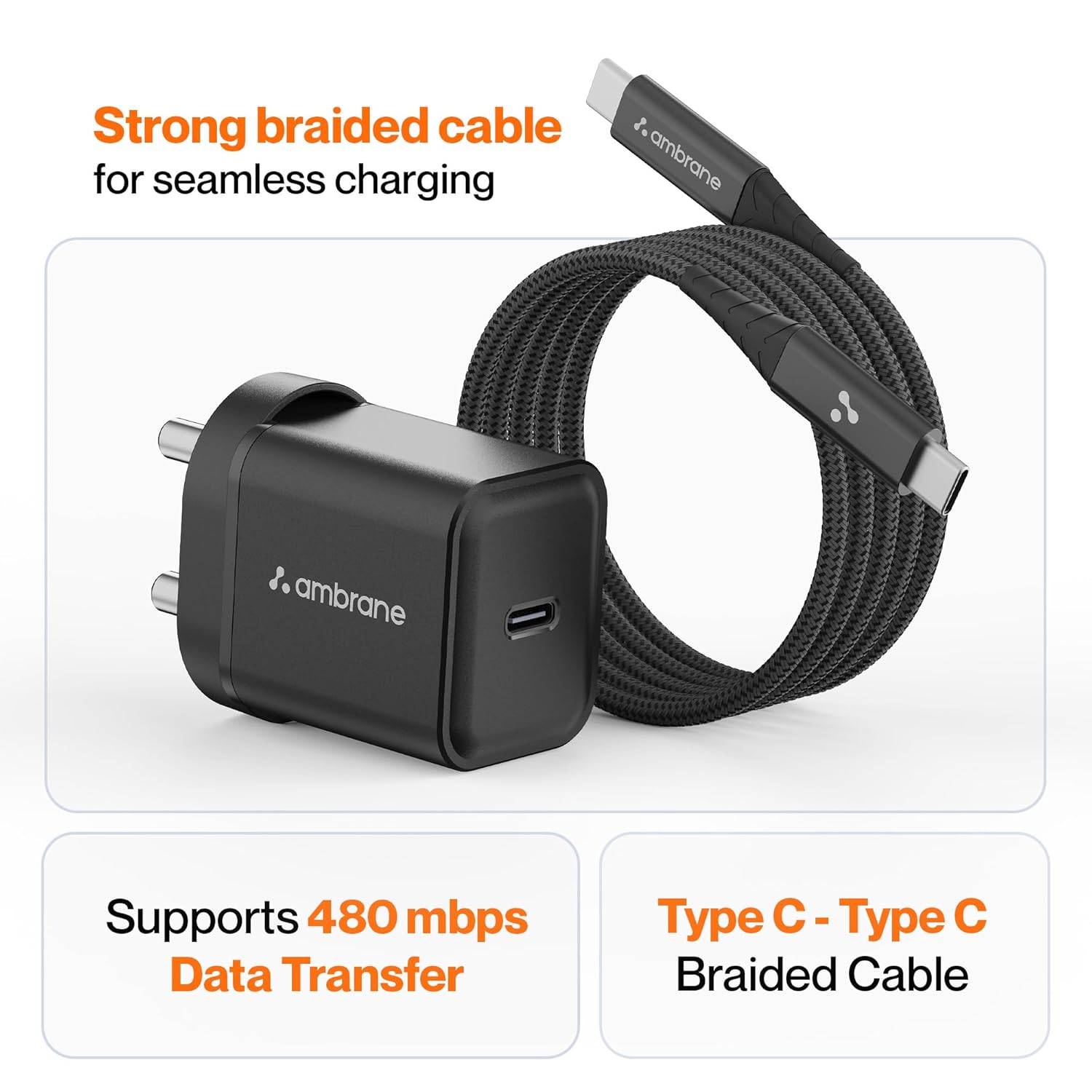 Ambrane 20W Mobile Charger with to Charging Cable | Fast Charging for Android, iPhone 15/14/13/12/11/X & Pro Max Series, Google Pixel & Other Devices (Charge 20, White)