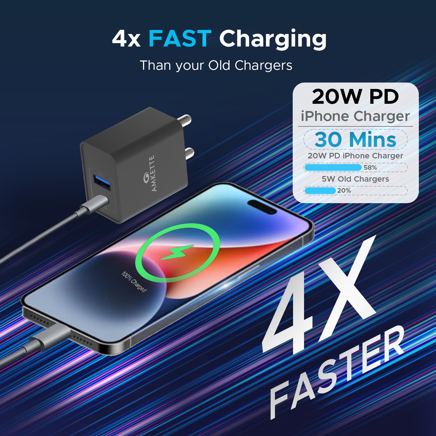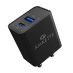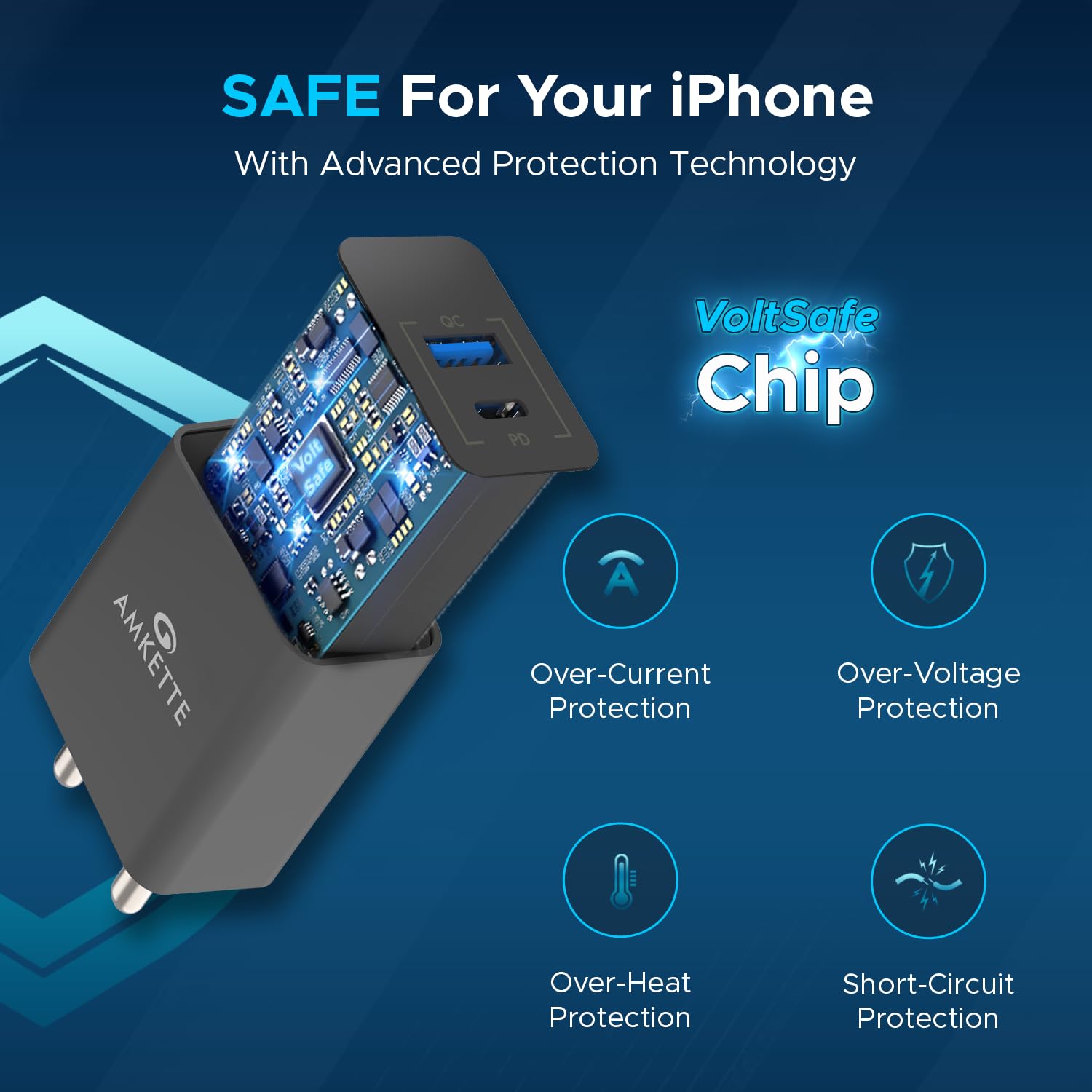 Amkette ChargePro 22.5W Charger Adapter With PD/QC 3.0 | PPS Fast Charger with Smart IC Protection| For iPhone 16/15/14/13/12 Series, Samsung S24/23 Galaxy/Note Series, Oneplus & Other Android Devices