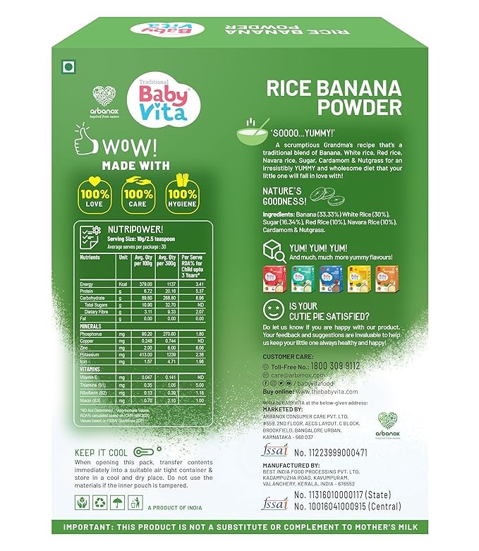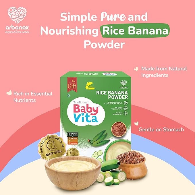 Babyvita Arbanox Rice Banana Powder Mix | Nourishing Meal | 100% Natural Ingredients | No Added Preservatives | Wholesome Energy Booster | Easy-to-Digest| 300 gms
