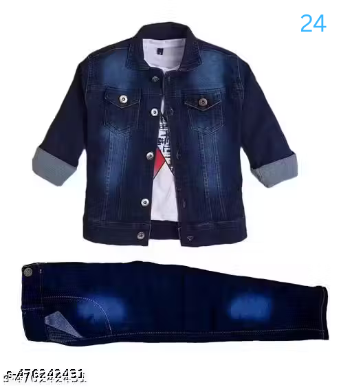 Name : Boys Jeans Jacket for kids with T shirt and pant