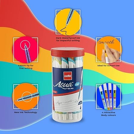 - The Cello Aqua gel pen has a 0.6mm fine tip for extra fine and perfect writing
