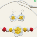 Name : Clay Flower with Cotton Ball Chokker and earrings set