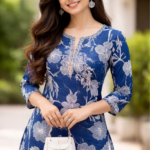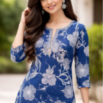 Elegant Blue Floral Short Kurti – Stylish Everyday Ethnic Wear