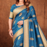 Step into timeless elegance with this beautiful teal blue saree, crafted to bring grace and sophistication to your festive and traditional wardrobe. The saree features luxurious silk-blend fabric that drapes effortlessly, enhancing your natural silhouette with a smooth and flattering fall.