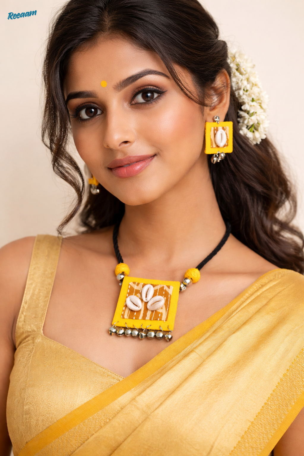 • Fabric Chokker set with earrings Traditional jwellery set with earrings