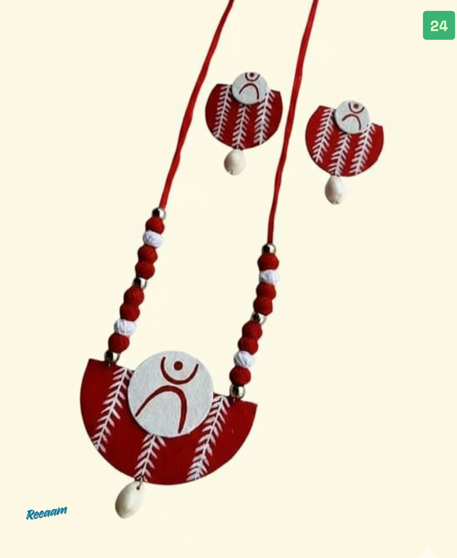 Name : Handcrafted Red & White Tribal Art Jewellery Set