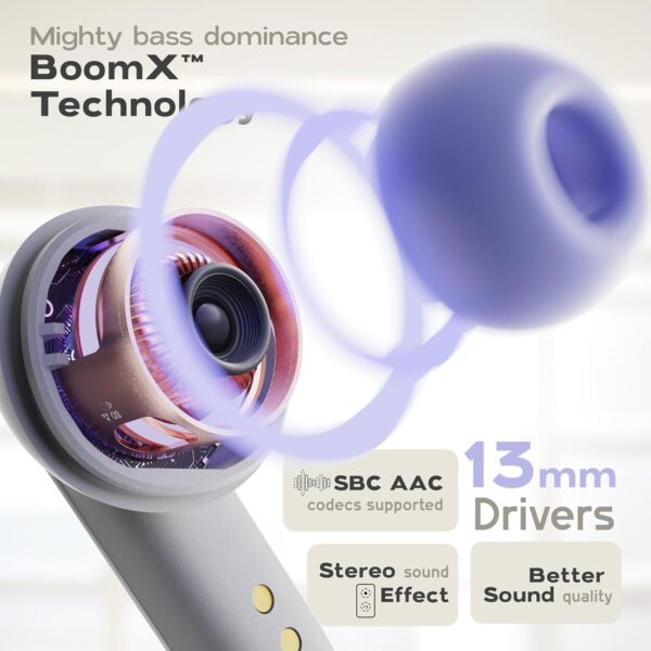 GOBOULT Z40 Pro with 100H Playtime, Quad Mic ENC, 45ms Low Latency Gaming, Premium Rubber Grip Case, 13mm Bass Drivers, Made in India TWS Truly Wireless in Ear Earbuds (Lavender)