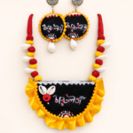 It’s a Handpainted Fabric Necklace with Earing.