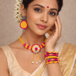 Haldi Special Yellow & Pink Fabric Jewellery Combo