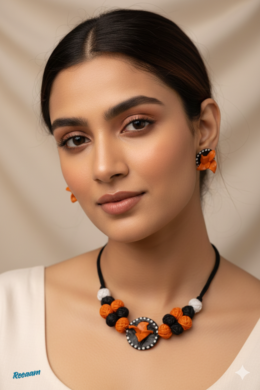 Handcrafted Orange Blossom Jewellery Set – Necklace & Stud Earrings