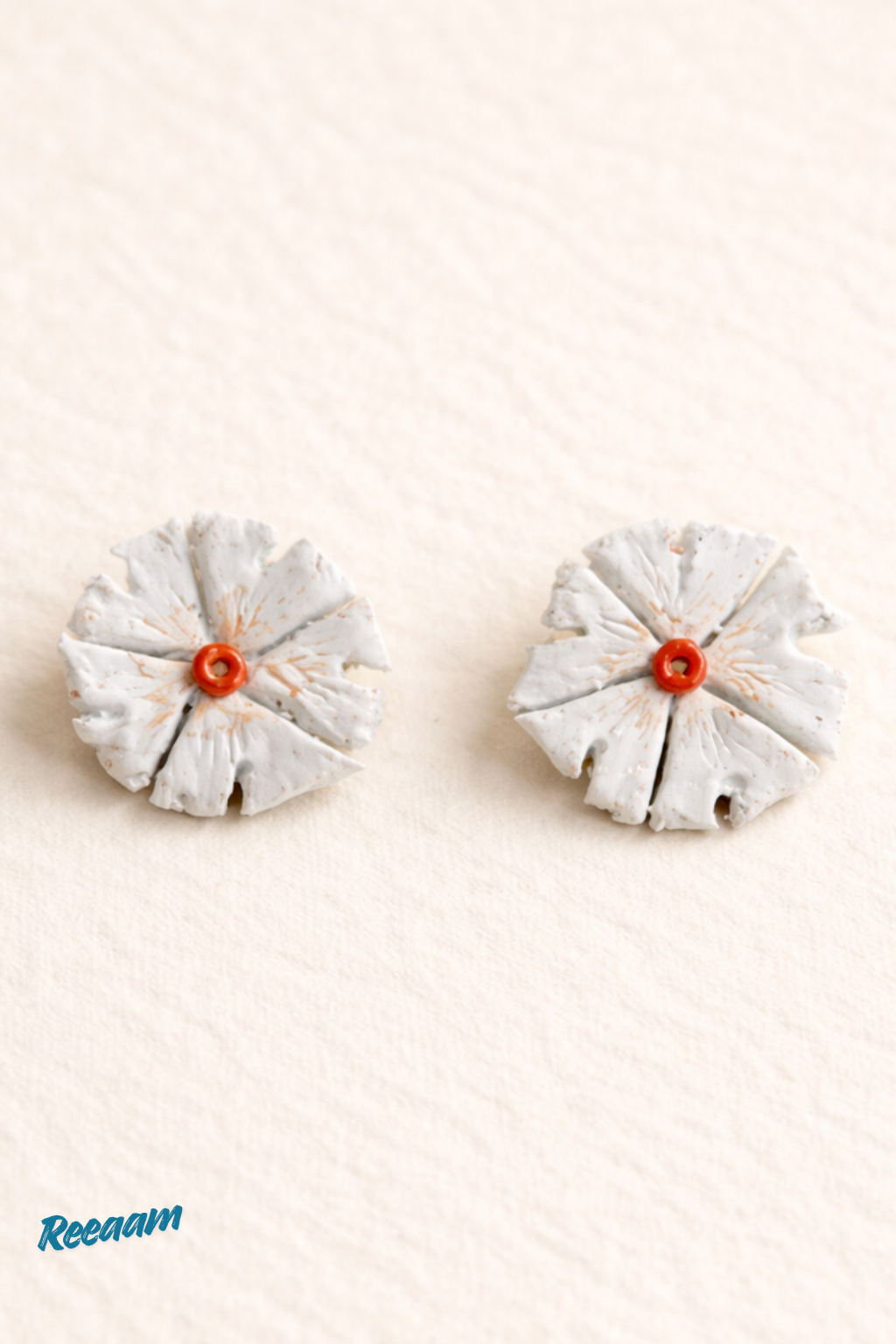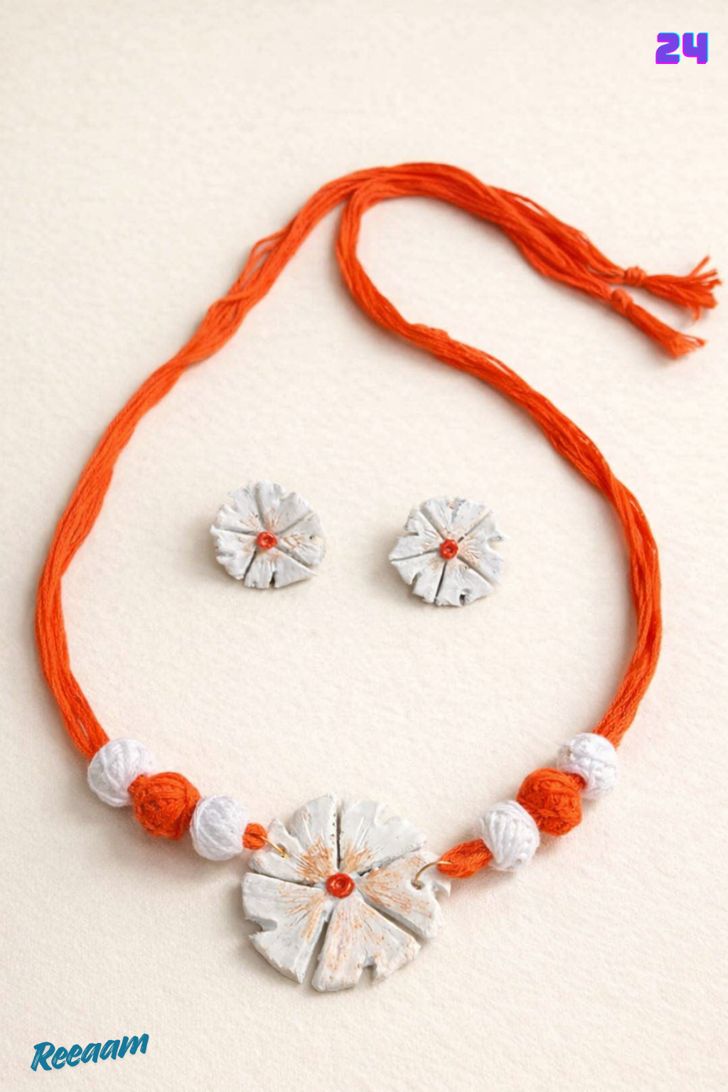 Elegant Handcrafted Floral Artistic Jewellery Set in Orange & White