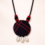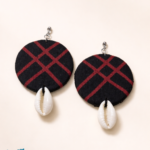 Name : Handcrafted Fabric Print Necklace & Earrings Set with Cowrie Shell Detailing
