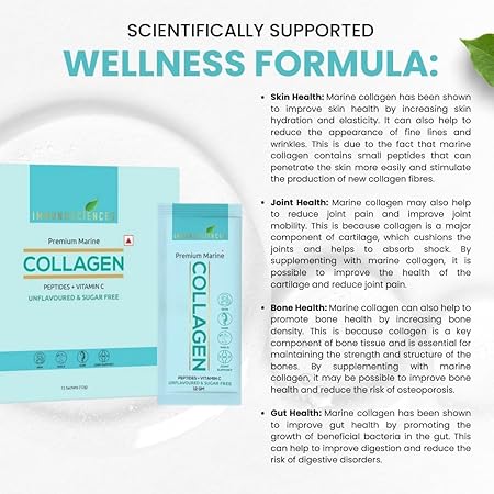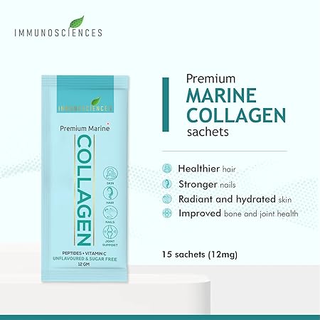 IMMUNOSCIENCES Premium Marine Collagen Supplements for Women & Men, with Peptides & Vitamin C, Helps Support Skin, Nails, Hair & Joints Health 15 Sachets (Pack of 2)