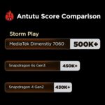• Power PLAY: Experience blazing-fast 5G with the segment’s first 2.6GHz octa-core MediaTek Dimensity 7060 (6nm) chipset—built for speed, smooth multitasking with an impressive AnTuTu score of 500K. Equipped with 8GB LPDDR5 RAM and 256GB UFS 3.1 storage for lightning-fast app launches and seamless data access. RAM is expandable up to 16GB (8GB physical + 8GB virtual) to ensure smoother performance during heavy multitasking.
