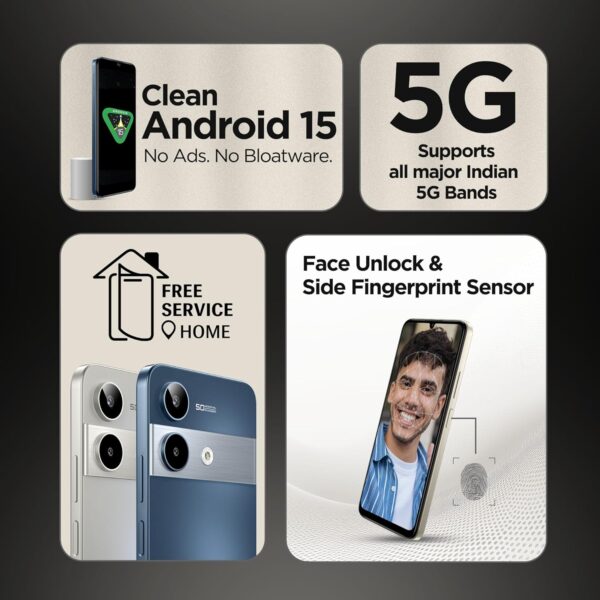 • Pure Android Experience: Clean Android 15 OS with Zero Bloatware and Zero Ads | Face-Unlock | Side Fingerprint Sensor