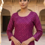 Elevate your ethnic wardrobe with this stunning Magenta Sequin Kurti Set. Designed for the modern woman who loves a touch of sparkle, this ensemble blends traditional craftsmanship with a contemporary silhouette. The vibrant jewel tone and intricate embroidery make it an ideal choice for weddings, parties, or festive celebrations.