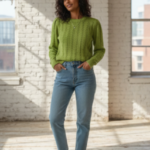 Elevate your everyday wardrobe with our Meadow Green Cable-Knit Sweater. This piece perfectly balances classic texture with a modern, vibrant hue. Crafted with a delicate cable-stitch pattern and a flattering crew neckline, it offers a cozy yet refined silhouette that transitions seamlessly from morning coffee runs to casual office days.