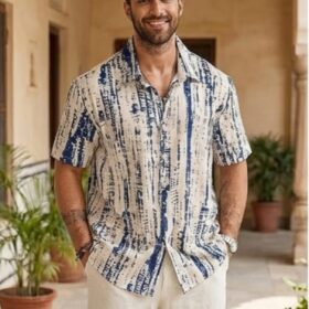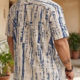 Men’s Abstract Blue Print Linen-Blend Co-ord T-shirt Set