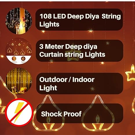 • Package Contains: 1 x Deep Diya Curtain LED Light (3 Meter, 108 LEDs)