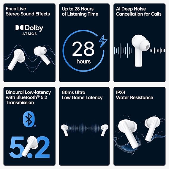 Oppo Enco Air2i Bluetooth Truly Wireless in-Ear Earbuds with Mic, Fast Charging & Up to 28Hrs Battery -Moonlight