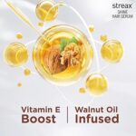 • Elevated with Essential Walnut Oil : Experience the brilliance and nourishment for glossy, shiny locks with every drop of out hair serum. The streax hair serum is enriched with Walnut Oil, an important requisite to achieve healthy, nourished hair. Our expert-curated formula brings you the best of nature and innovation, making for an ideal hair serum for frizzy hair.