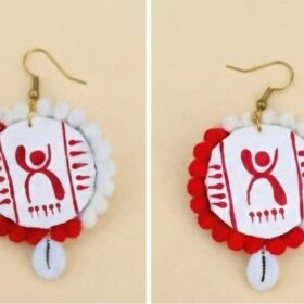 Traditional Hand-Painted Cowrie Shell Statement Earrings
