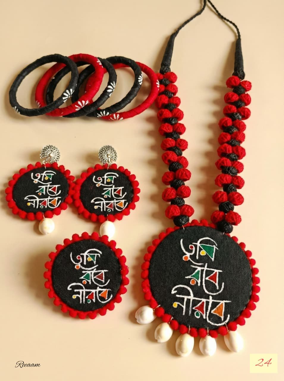 • Fabric jwellery set with earrings Fingerring and 5 Churi combo||Handmade traditional Bride Jewellery Set