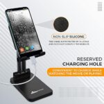 • Anti-slip pad: The Phone holder for table has an anti-slip pad which works perfect to keep your devices in place while in use and prevent from daily scratches and sliding