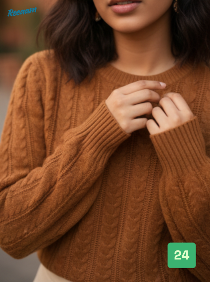 Embrace the crisp air with our Heritage Cable-Knit Sweater. This piece features an intricate, traditional cable weave and a soft crew neckline, finished in a rich, warm toffee hue. Perfectly weighted for transitional weather, it offers a relaxed yet tailored silhouette that pairs effortlessly with pleated skirts or high-waisted denim.