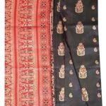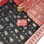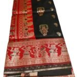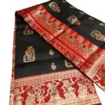 Women`s Pure Baluchari Saree Handwoven With Minakari Work Traditional Design – Black Red