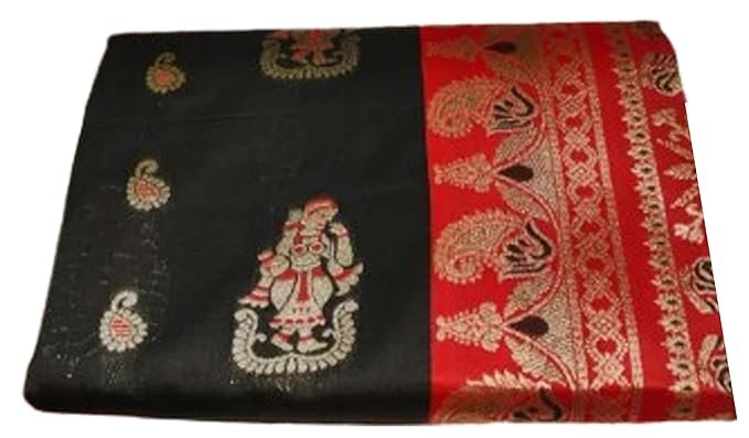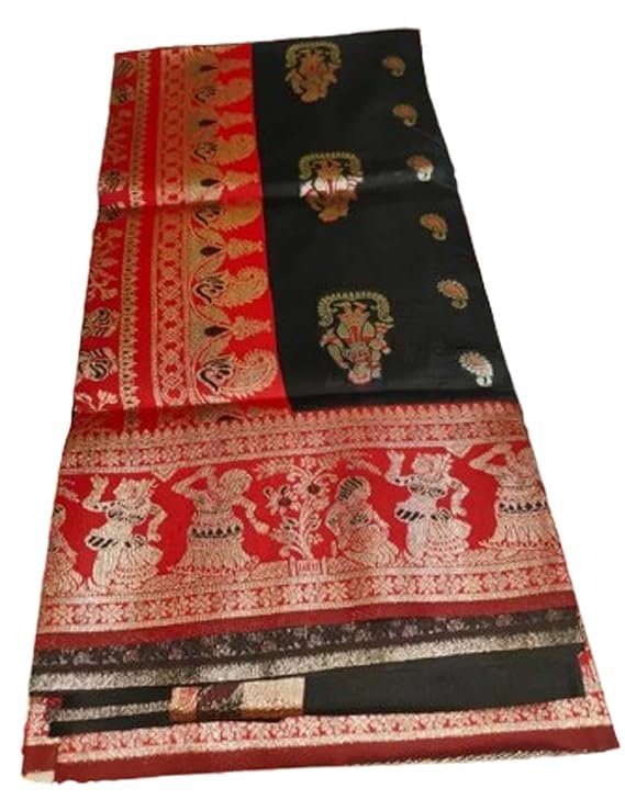 Women`s Pure Baluchari Saree Handwoven With Minakari Work Traditional Design – Black Red