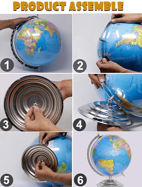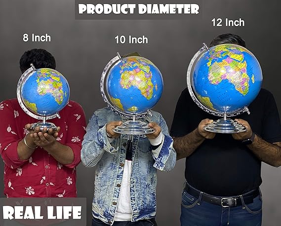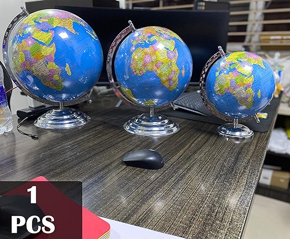 • 🌍FEATURES :- Globes for political students/kids/adults can be put on study table , desk coaster , office table both on big/small size or can be used for home decoration it is a light weight & easy to clean. Base Matrial- Metal, Globe Daimeter- 12 Inch