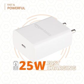 Ambrane 25W Mobile Charger Adapter with Charging Cable | Fast Charging for Samsung Smartphones, iPhone 15/14/13/12/11/X & Pro Series & Other Type-C Devices (Charge 25, White)
